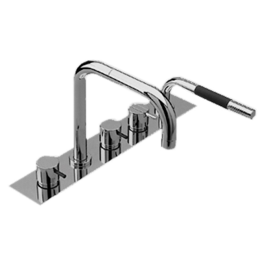 5-Loch, Endmontageset für, Wannenrandmontage, Standein-, lauf eckig A 200 mm schwenkbar, Kalt- und Warmwasserventile, Mischer, Auszugbrause, ohne Montagekasten 767 103, Geräuschgruppe I