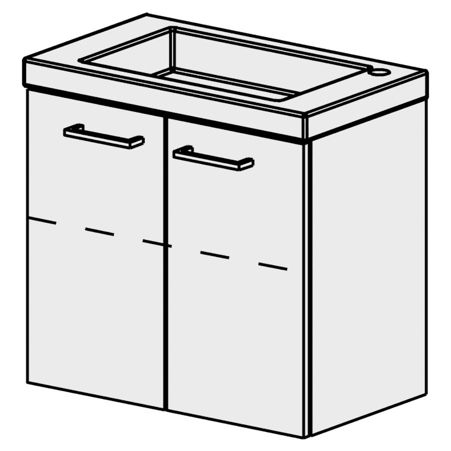 B: 60,5 H: 56,6 T: 35 cm, Abdeckung Keramik weiss, inkl.1 Becken,, 1 Tablarschrank 2-türig, 1 Tablar verstellbar, Türen mit Blumotion, Griffe gemäss Palette, Fronten/Sichtseiten gem. Code, Farbe gemäss Palette