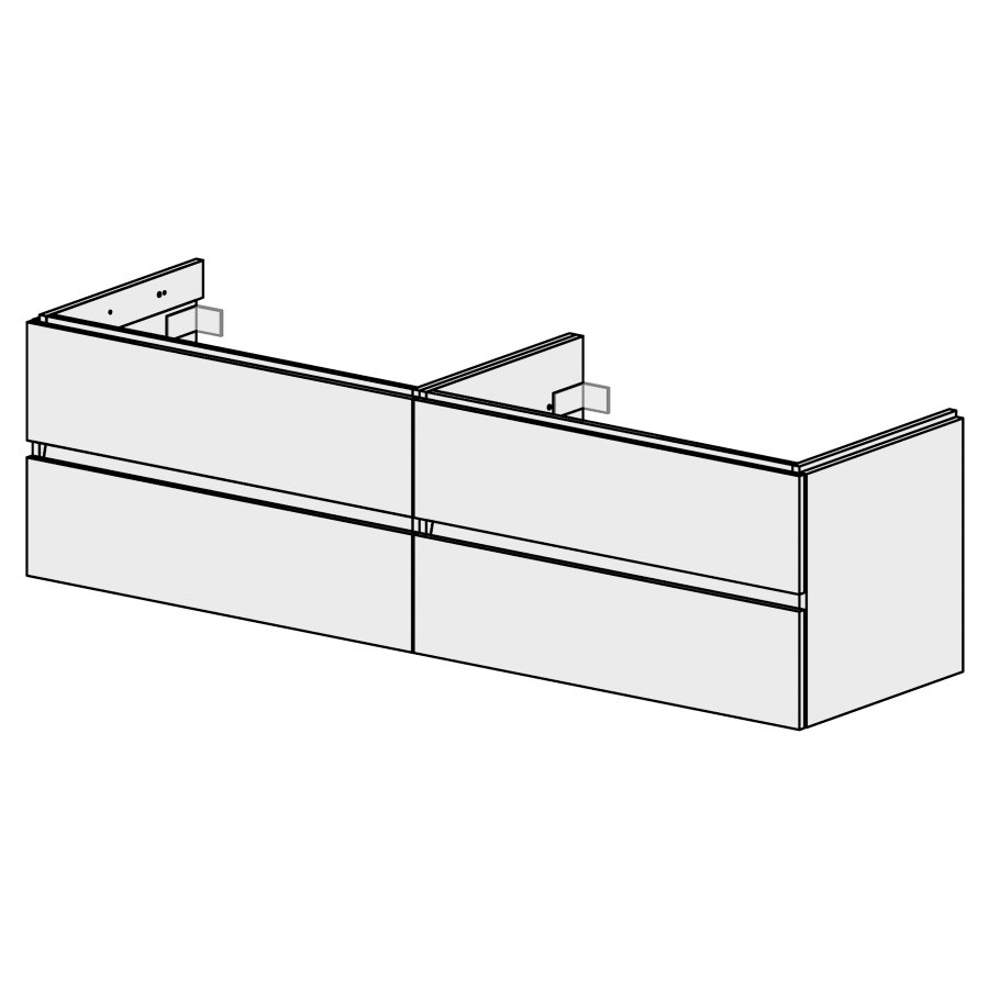 B:180, H:49 T:50,7 cm, zu 2 Becken, 2 x 2 Schubladen,, Schubladen mit Blumotion, mit Griffleiste, Fronten/Sichtseiten gem. Code, Farbe gemäss Palette, inkl. Raumsparsifon und, Steckdichtung 32 mm