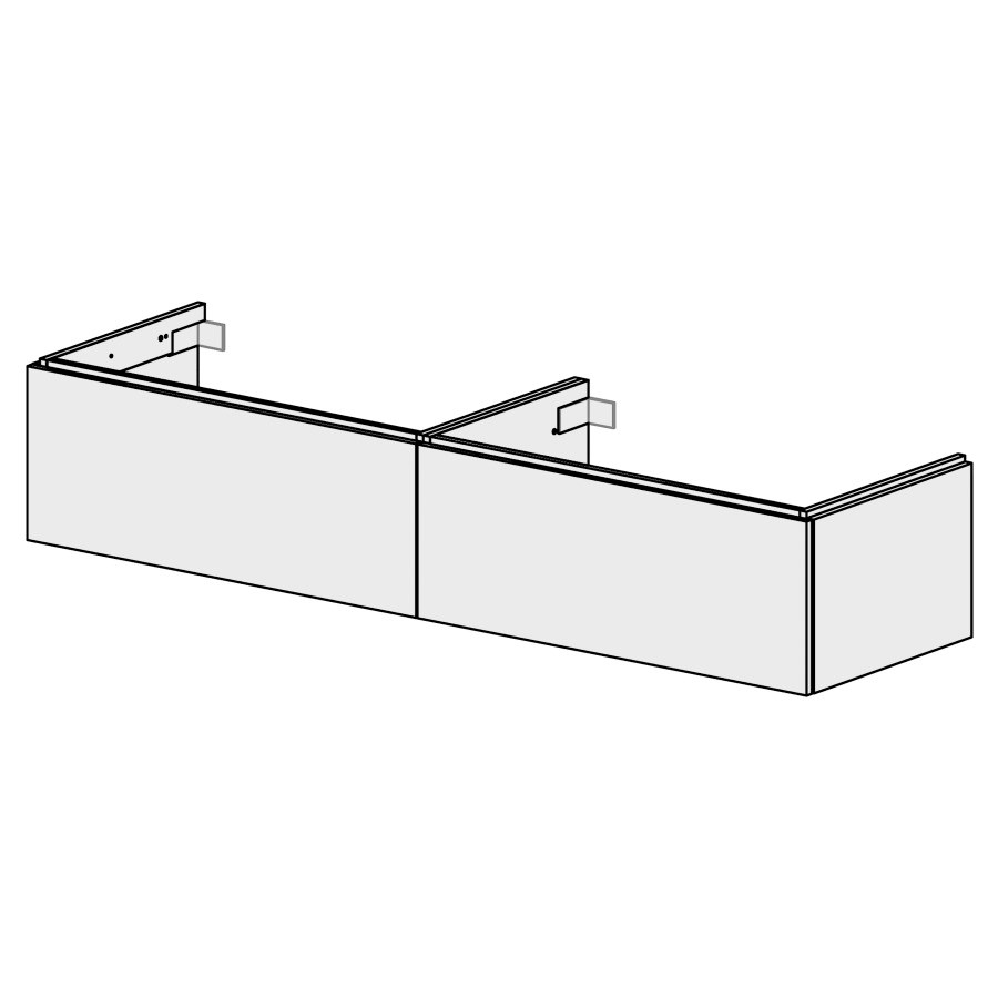 B:180, H:34,5 T:50,7 cm, zu 2 Becken, 2 Schubladen,, Schubladen mit Blumotion, Griffprofil, Fronten/Sichtseiten gem. Code, Farbe gemäss Palette, inkl. Raumsparsifon und, Steckdichtung 32 mm