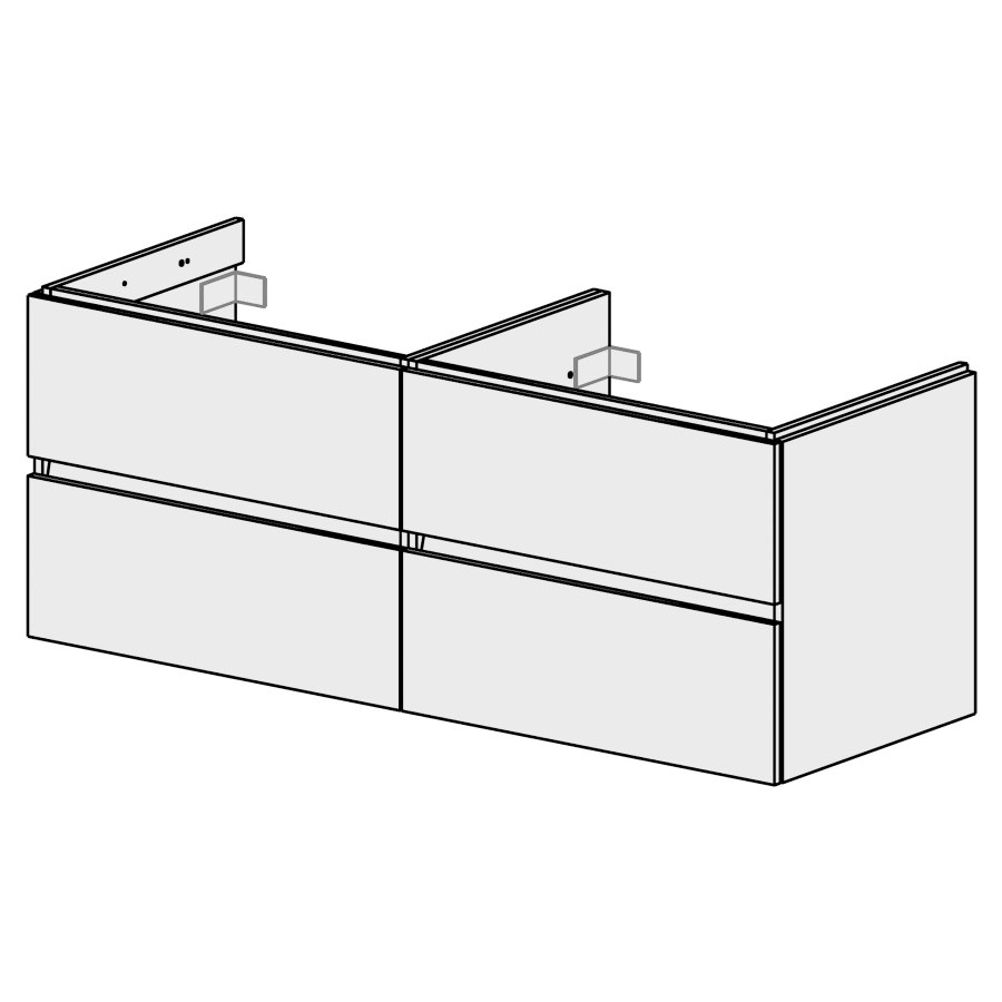 B:149,6, H:55 T:53,7 cm, zu 2 Einbaubecken, 2 x 2 Schubladen,, Schubladen mit Blumotion, mit Dekorleiste, Fronten/Sichtseiten gem. Code, Farbe gemäss Palette, inkl. Raumsparsifon und, Steckdichtung 32 mm