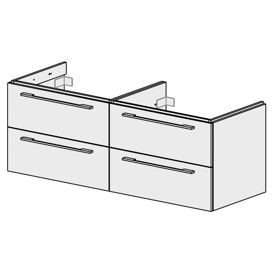 B:149,6, H:55 T:53,7 cm, zu 2 Einbaubecken, 2 x 2 Schubladen,, Schubladen mit Blumotion, mit Griffe gemäss Palette, Fronten/Sichtseiten gem. Code, Farbe gemäss Palette, inkl. Raumsparsifon und, Steckdichtung 32 mm