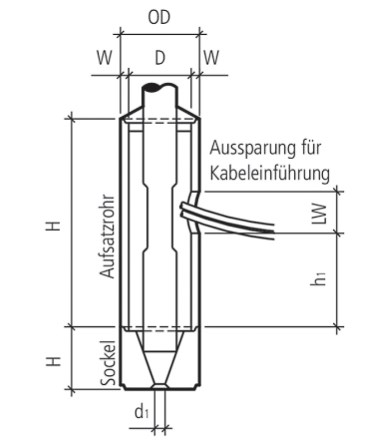 Aufsatzrohr mit 1 Aussparung für Kabeleinführung, h1 = 47 cm, LW = 8 x 20 cm
