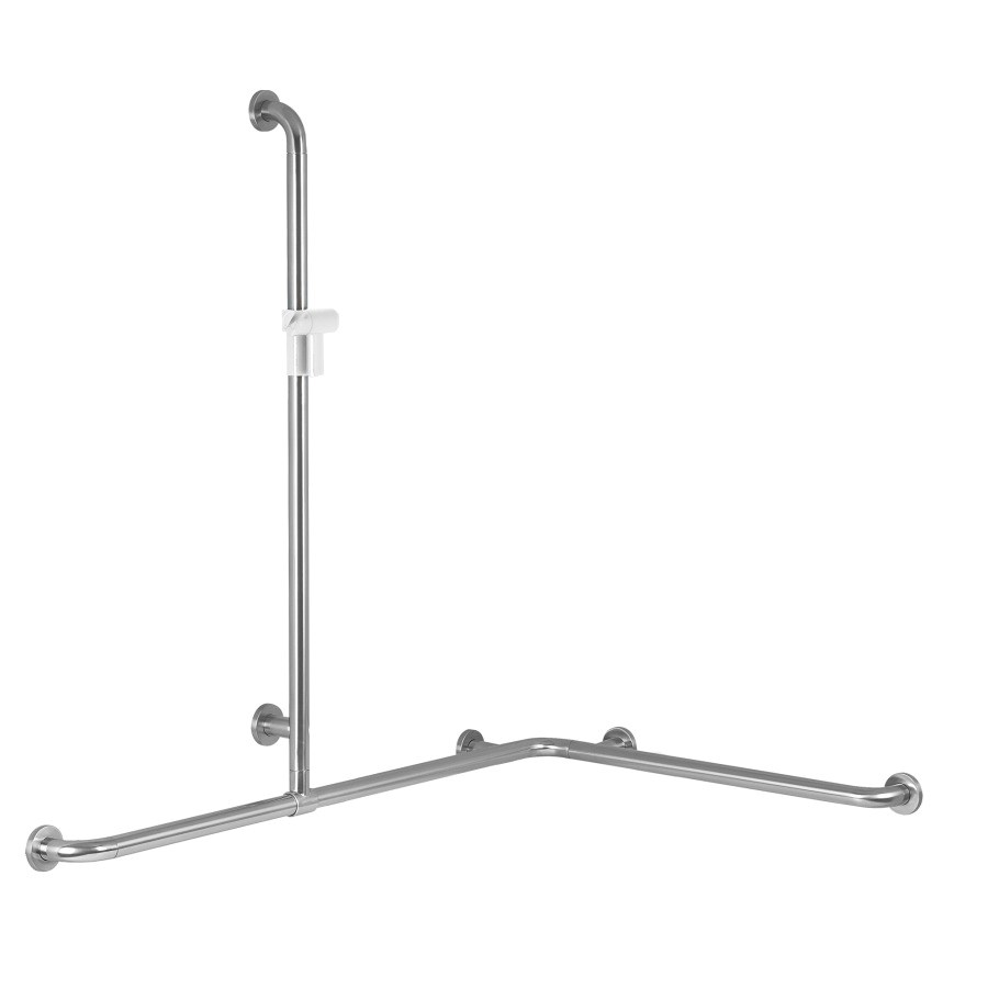 118,5 x 76,2 cm, H 125 cm, D 33 mm, Stange Edelstahl, montierbar links/rechts, Brausehalter Polyamid in Hewi, Farben, stufenlos verstellbar, Brausehalter signalweiss