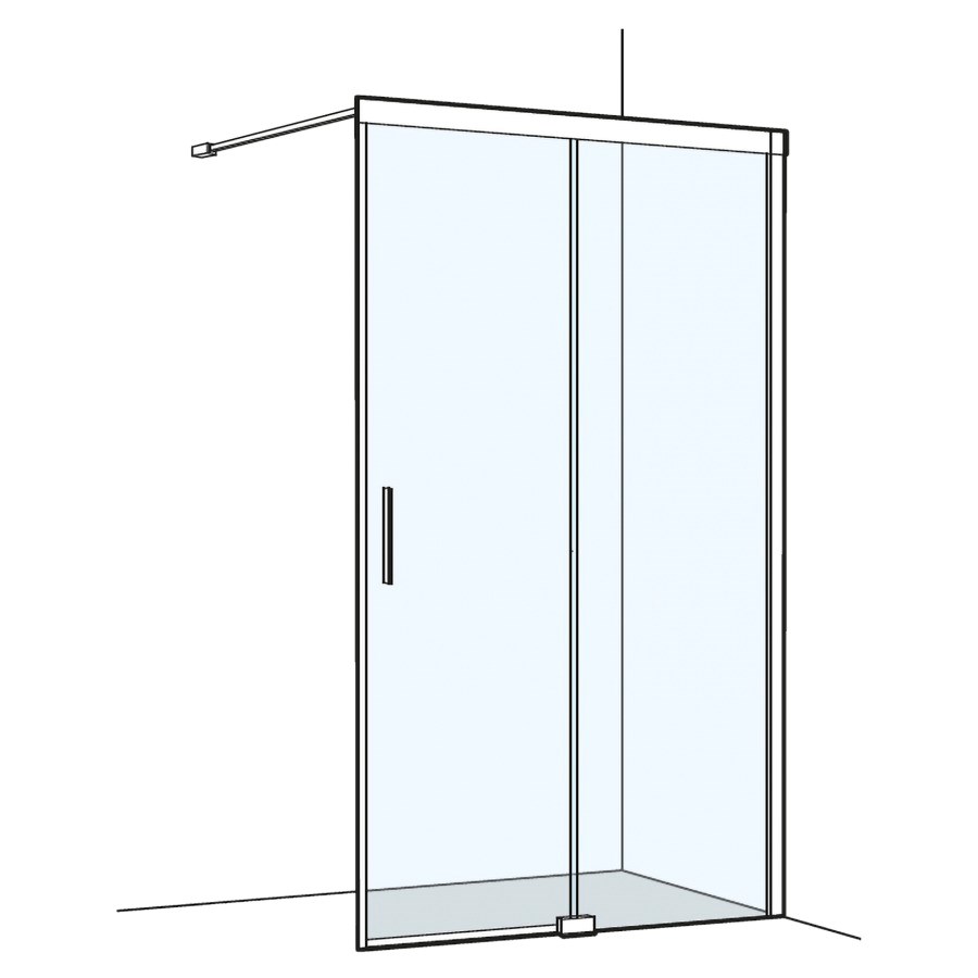 138,5-140 cm, H 200 cm, freistehend, teilgerahmt, 2-teilig, Festteil rechts, Soft-Stop, Self-Close Funktion, Magnetführung, Schwallprofil, Echtglas Discreto Duschguard