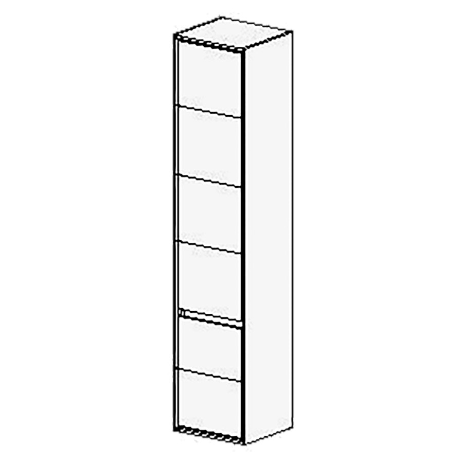 L:37, H:170, P:33,7 cm, 2 Türen, Band links, mit Griffleiste, 4 Tablare verstellbar, Sichtseiten Weiss Hochglanz, Fronten Modern,