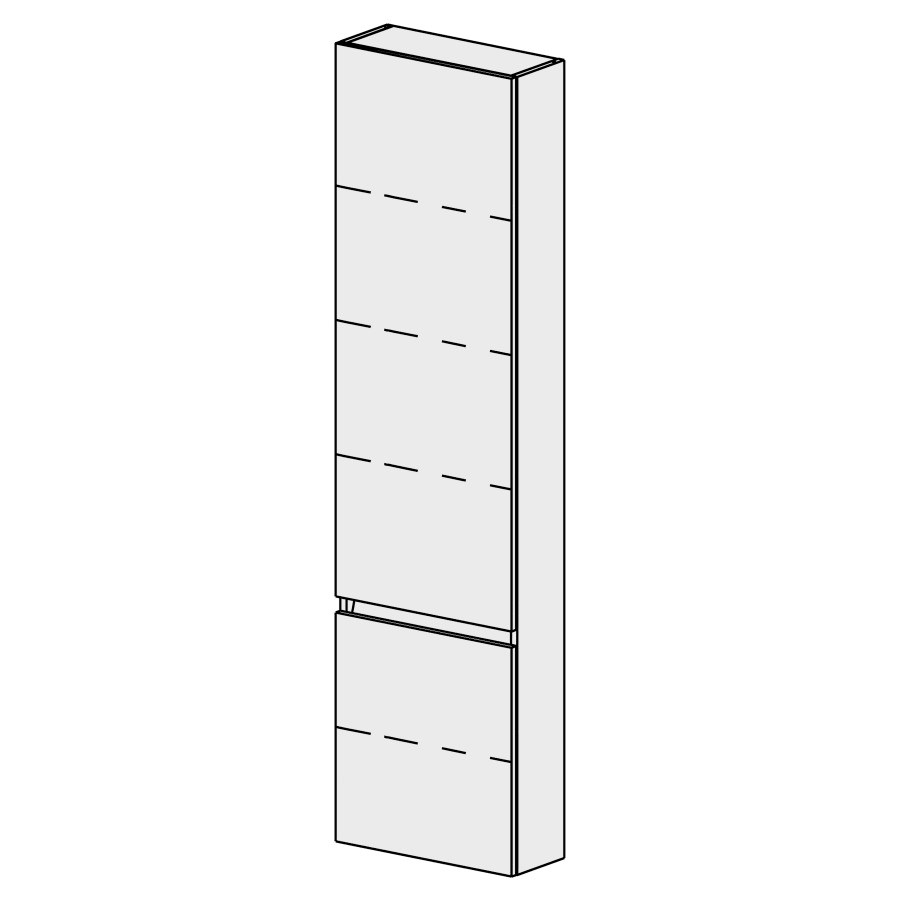 B: 45, H: 168, T: 17,8 cm, 2 Türen, Band links, 4 Tablare verstellbar, Türen mit Blumotion, mit Griffleiste, Fronten/Sichtseiten gem. Code, Farbe gemäss Palette