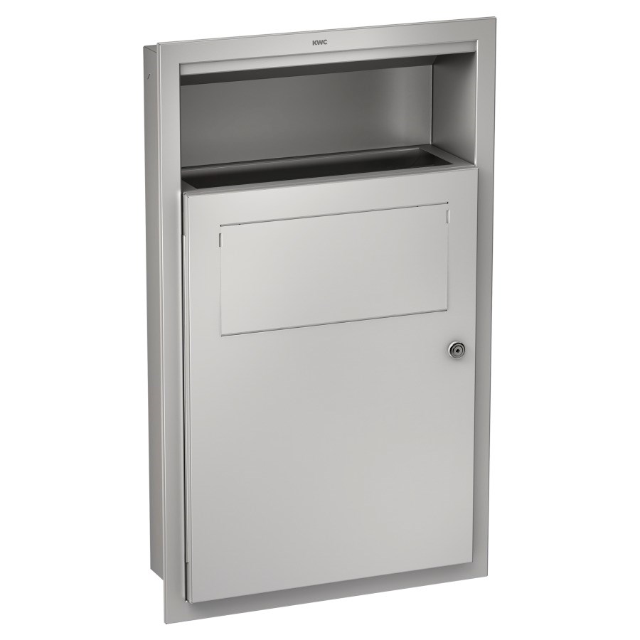 RODX612E, 40,1 x 65,9 x 13 cm, Edelstahl seidenmatt, mit selbstschliessendem Klapp-, deckel und Sackhalterung, Inhalt 6 Liter, abschliessbar, Befestigungsmaterial