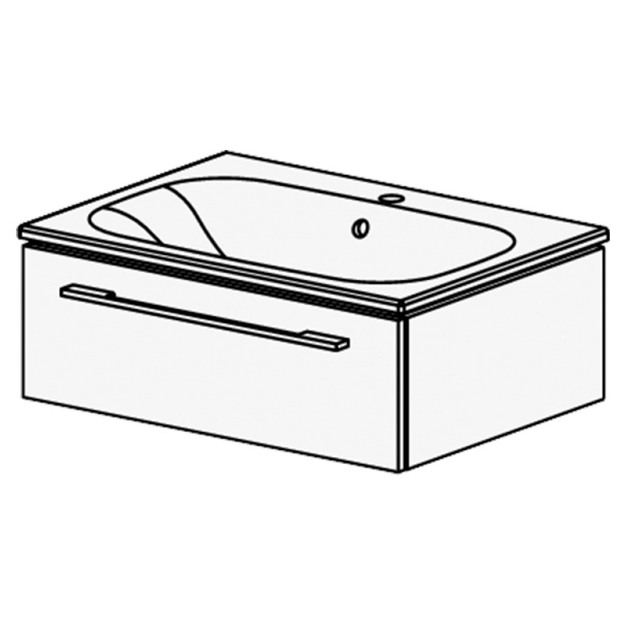 71 cm, B: 71 / H: 26.3 / T: 51 cm, Keramikwaschtisch weiss, mit Überlauf, mit 1 Becken, 1 Schublade, Griff gemäss Palette, Fronten/Sichtseiten Modern,