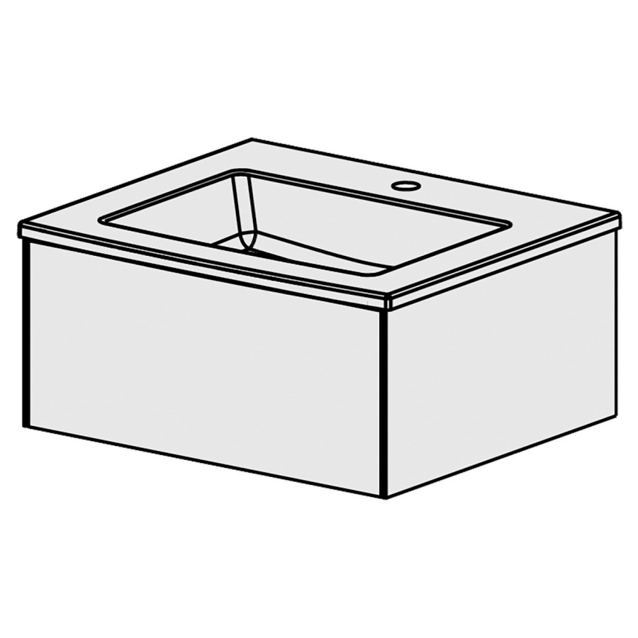 B: 61 / H: 27.9 / 51.5 cm, mit Keramikwaschtisch, mit überlauf, mit 1 Becken in der Mitte, 1 Schublade, Tip-On, Front gemäss Palette, Seiten FB gemäss Palette