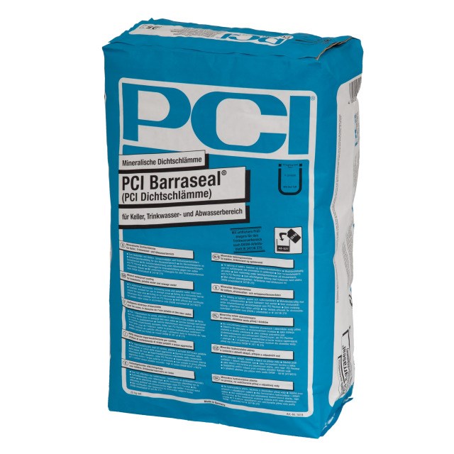 Mineralische Dichtungsschlämme für den Innen- und Aussenbereich, an Wand, Boden und Decke, als Behälterabdichtung z. B. Trinkwasserbehälter/ Reservoirs bis 10 m Füllhöhe, zum Abdichten von Kellern, Feuchträumen und Stützmauern, Kanälen und Gerinnen von Abwasserbauwerken, Mindestschichtdicke 2 mm (ca. 3,3 kg Trockenmischung) bei Zwischenabdichtung und als Innenabdichtung von Salz-und feuchtebelastetem Mauerwerk, Mindestschichtdicke 3,5 mm (ca. 5,8 kg Trockenmischung) für Wasserbehälter mit Füllhöhe ≤ 10 m, Verarbeitbarkeitsdauer ca. 60 Minuten, begeh- und überarbeitbar nach ca. 2 Tagen, mit Wasser belastbar nach ca. 3 Tagen