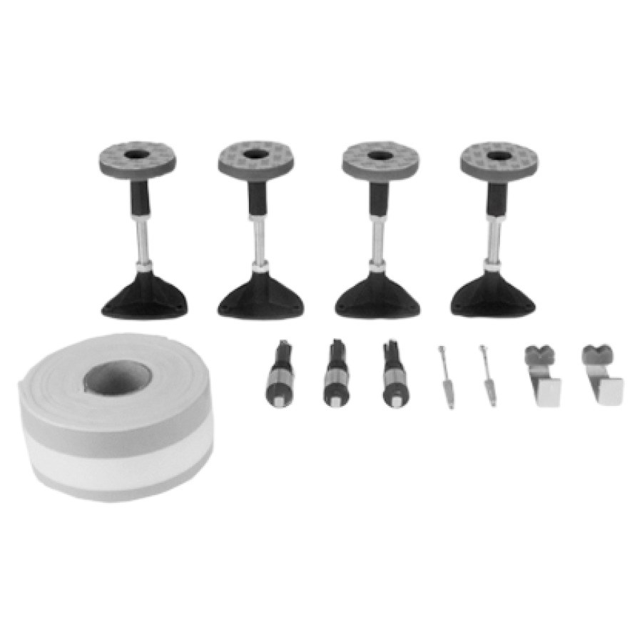 Duschenwanne Stahl, bis 90 x 90 cm, 4 Wannenfüsse, 3 NIVOelast-Dübel, 1 Wannenprofil, 2 Wannenanker, Einbau an 2-3 Wandseiten, Einbauhöhe 5 - 14 cm, für erhöhte Anforderungen, nach SIA 181