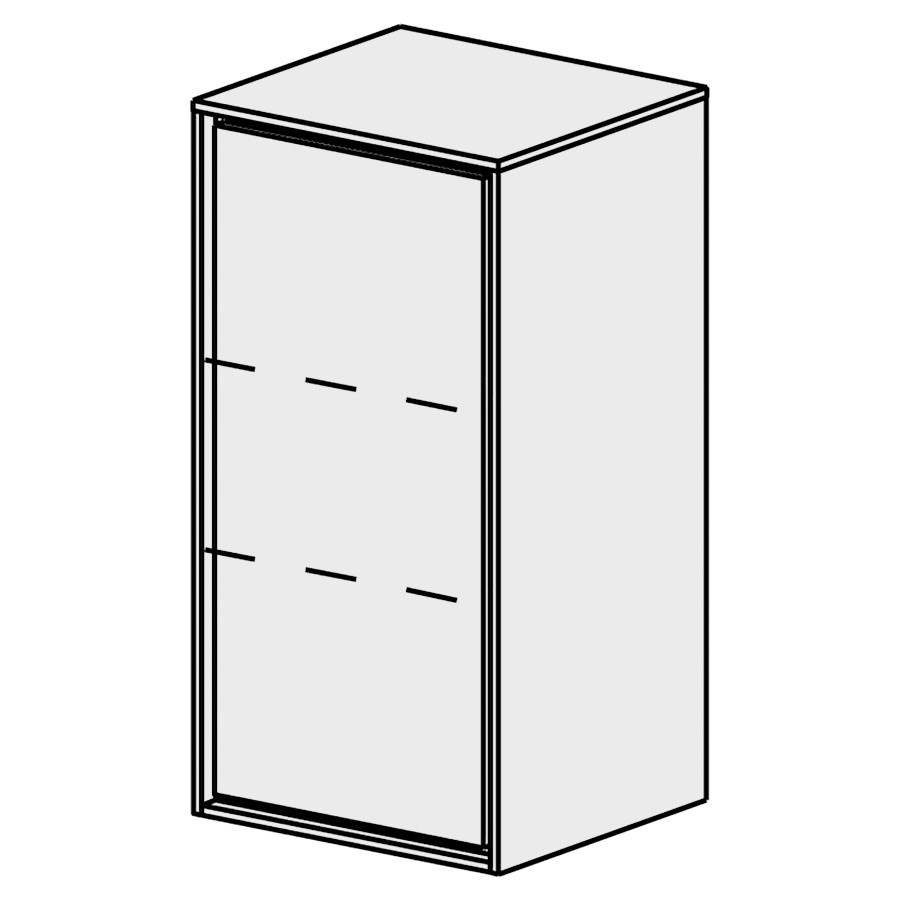 B: 37, H: 67,6, T: 31,4 cm, 1 Türe, Band links, 2 Tablare verstellbar, Dekorrahmen weiss matt, Türe mit Blumotion, ohne Griff, Tiip-on, Fronten/Sichtseiten gem. Code, Farbe gemäss Palette