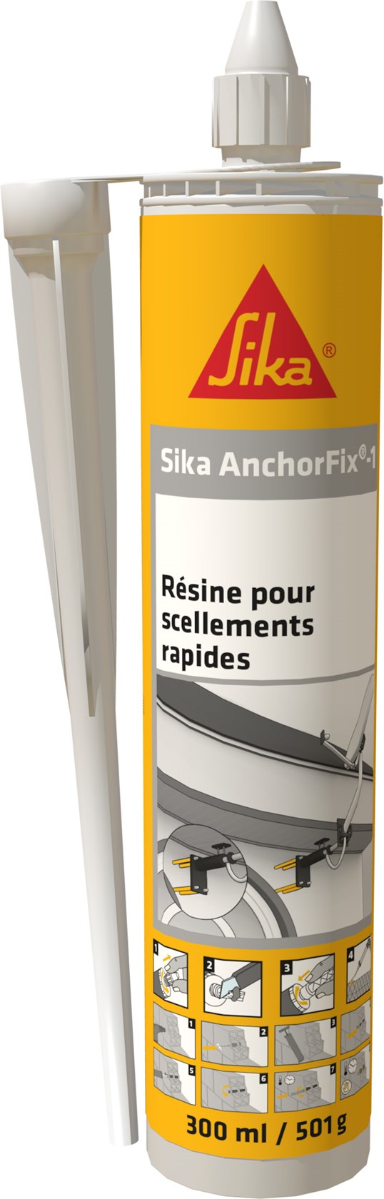 Sika AnchorFix-1 ist ein styrolfreier, lösemittelfreier und schnellhärtender 2-Komponenten Ankerklebstoff auf Methacrylatester-Basis für kraftschlüssige Verklebungen von: Armierungseisen, Gewindestählen, Bolzen und diversen anderen Ankersystemen in Beton oder Mauerwerk (Loch- und Massivstein), bei Naturstein und ungerissenem Fels sind Versuche bezüglich Haftzugfestigkeit und Verfärbungen zwingend notwendig, auch bei tiefen Temperaturen anwendbar bis -10°C (bei -10°C Kartuschen bei mindestens +5°C lagern), Bohrlochtiefe und Durchmesser ggf. mit Siebhülsen beachten, Bohrlöcher staubfrei und trocken ausblasen ! Druckfestigkeit 50 N/mm², Aushärtezeiten: Bei -10°C Offenzeit 30 Minuten - 24 Aushärtezeit 24 Stunden, Aushärtezeiten: Bei +20°C Offenzeit 6 Minuten - Aushärtezeit 50 Minuten