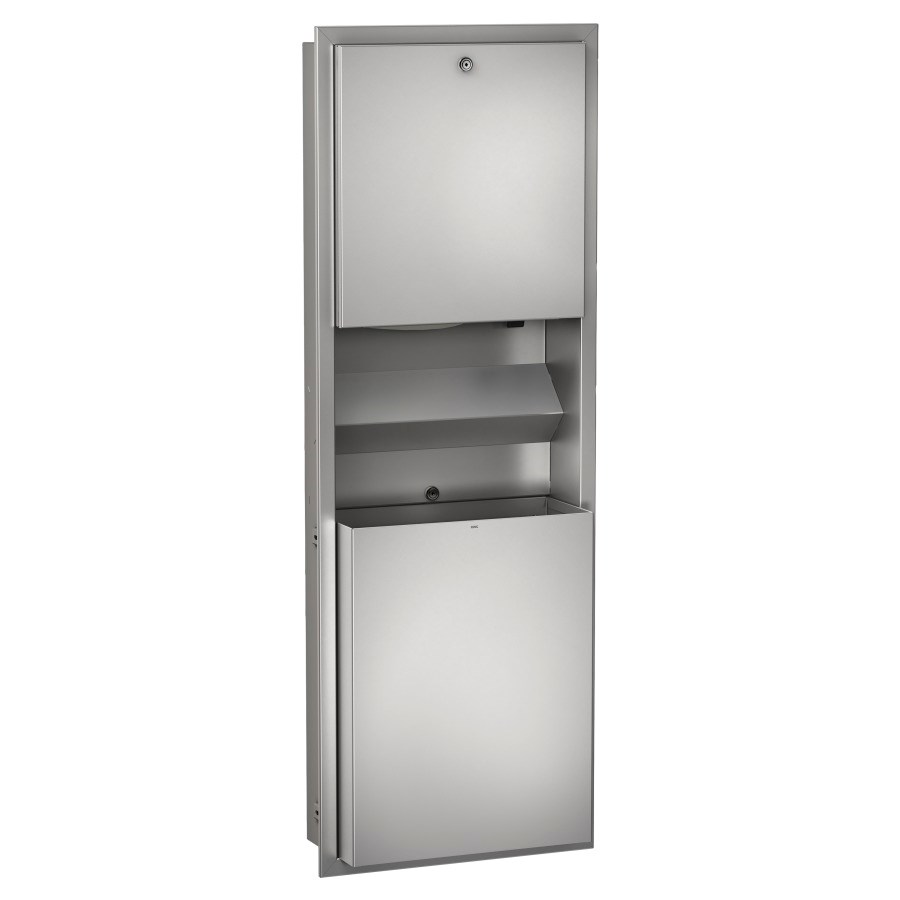 RODX617E, 40,8 x 114,5 x 16,9 cm, Edelstahl seidenmatt, Papierhandtuchspender, für 300-400 Falthandtücher, Seifenspender Inhalt 0,8 Liter, Abfallbehälter Inhalt 23 Liter, abschliessbar, Befestigungsmaterial