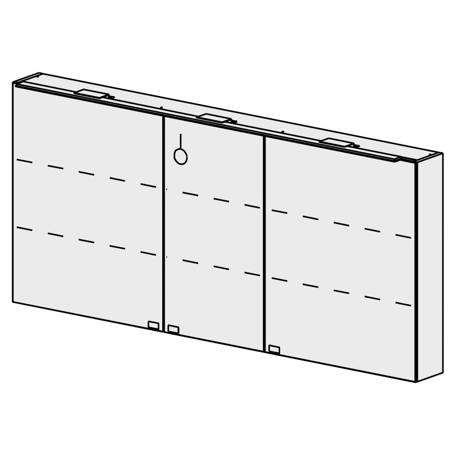 160 cm.B:160, H:72,5, T:13,5cm, 3 Türen, 60-40-60 cm, mit Softclose, Doppelsteckdose Mitte, ohne Farbwechsler, LED 150 cm, 4200°K / 28 W /12v, IP44 zertifiziert, Sichtseiten gemäss Code