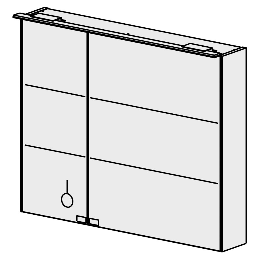 LED 90 cm.B:90, H:72.5, T:13.5, 2 Türen, 30-60 cm, mit Softclose, Doppelsteckdose links, ohne Farbwechsler, LED 90 cm, 4200°K / 11 W / 12V, IP44 zertifiziert, Sichtseiten gemäss Code