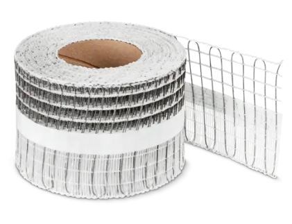Das Easy Fix Entkopplungsband ist eine selbstklebende Putzbrücke bei Mörtelfugen über 2 cm beim Übergang Decke-Wand im Innenbereich, es dient als Entkoppelung, Rissminimierung bei Deckenverdrehungen der Mörtelfugen zum Backstein sowie für Rissbreiten im Untergrund bis maximal 0,3 mm, danach kann direkt darauf verputzt werden (ohne zusätzliche Netzeinbettung), Zusammensetzung: Rostfreier Stahldraht mit Kordelaufbau 7 x (3 x 0,15 mm) mit Nähfaden verbunden, Polyester-Gewebe als Entkoppelung, Klebeband