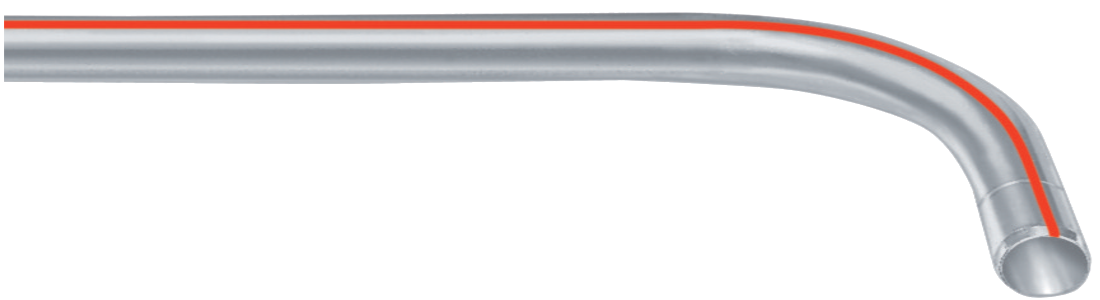C+S Kabelschutzrohrbögen «chiaro» aus LDPE (Hausanschlussbogen), mit roten Streifen, Typ KRB-BL2000, mit verlängertem Schenkel für Hauseinführungen, Radius 600 mm