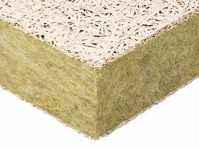 3 Schicht-Dämmplatte mit geraden Kanten, mit Kern aus Steinwolle und einer beidseitigen ca. 5 mm starken, mit Weisszement gebundenen Holzwolle-Deckschicht, zum Einbetonieren oder nachträglicher Montage in Decken, Wände, Säulen (auch mit Stufenfalz erhältlich), speziell für Anwendungen im Schall- und Brandschutz geeignet, Technische Daten: Wärmeleitfähigkeit: Kern: λD 0.039 W/mK; Deckschicht 5 mm: λD 0.070 W/mK, Brandkennziffer: A2-s1, d0 nach VKF 25474