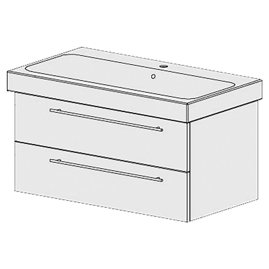 90 cm,, B: 86, H: 46, T: 45,8 cm, Schubladenstock à 2 Schubladen, Schubladen mit Blumotion, Griffe gemäss Palette, Fronten/Sichtseiten gem. Code, Farbe gemäss Palette, für Raumsparsifon und, Steckdichtung 32 mm