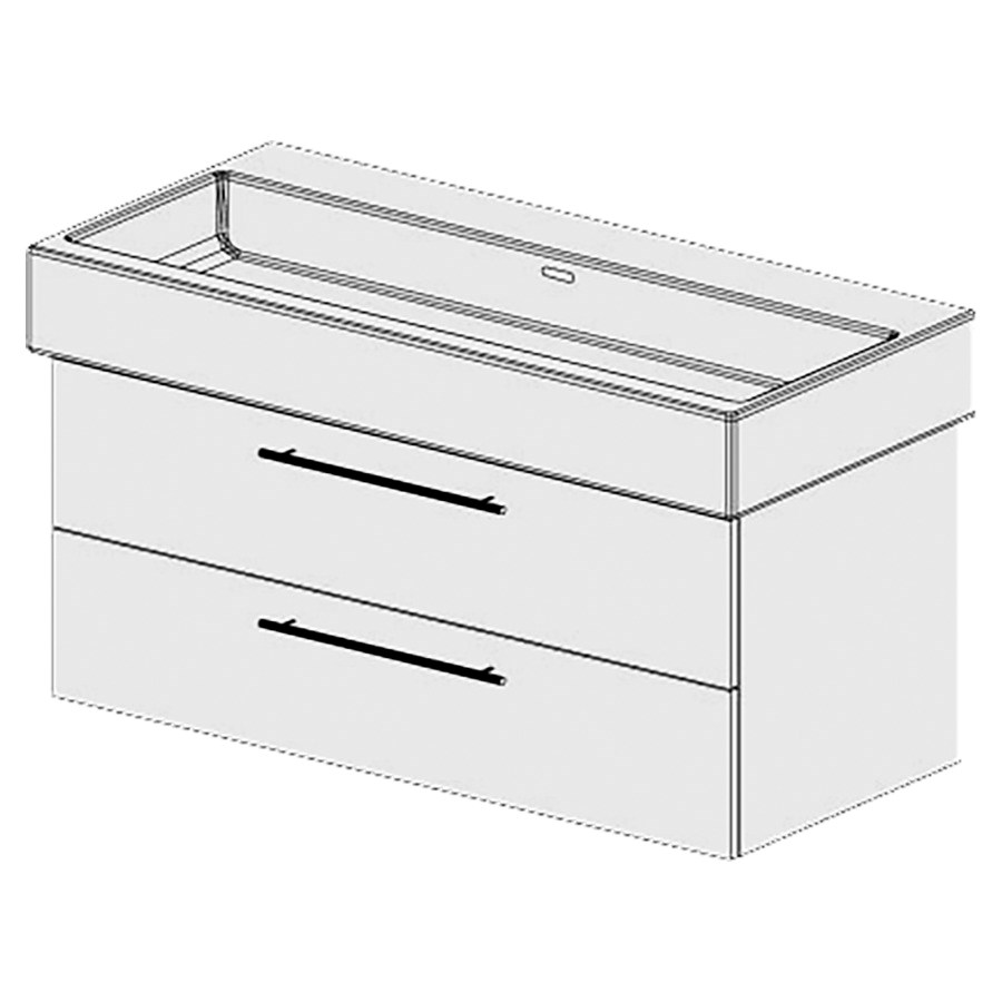 100 cm, B: 96, H: 46, T: 43,8 cm, Schubladenstock à 2 Schubladen, Schubladen mit Blumotion, Griffe gemäss Palette, Fronten/Sichtseiten gem. Code, Farbe gemäss Palette, für Raumsparsifon und, Steckdichtung 32 mm
