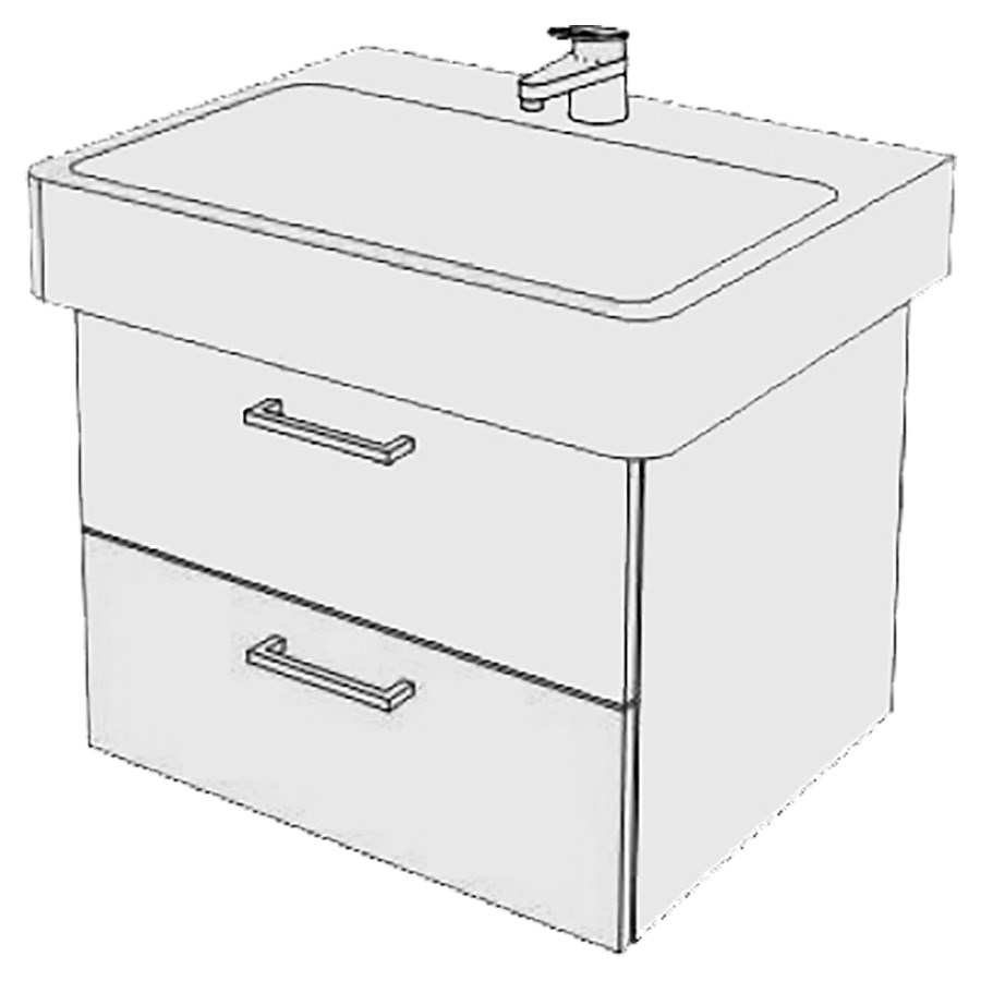 B: 53 H: 46, T: 44,8 cm, 2 Schubladen, Schubladen, mit Blumotion, Griffe gemäss Palette, Fronten/Sichtseiten gem. Code, Farbe gemäss Palette, für Raumsparsifon und, Steckdichtung 32 mm