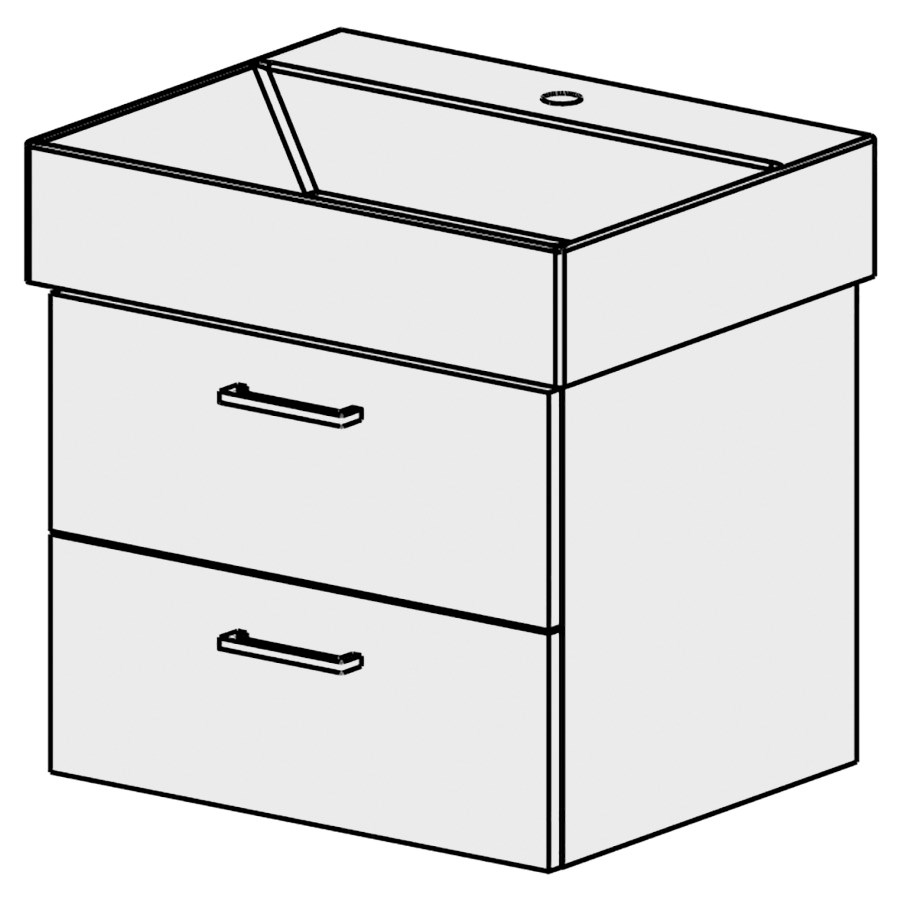 B: 56, H: 46, T: 45,8 cm, Schubladenstock à 2 Schubladen, Schubladen mit Blumotion, Griffe gemäss Palette, Fronten/Sichtseiten gem. Code, Farbe gemäss Palette, für Raumsparsifon und, Steckdichtung 32 mm
