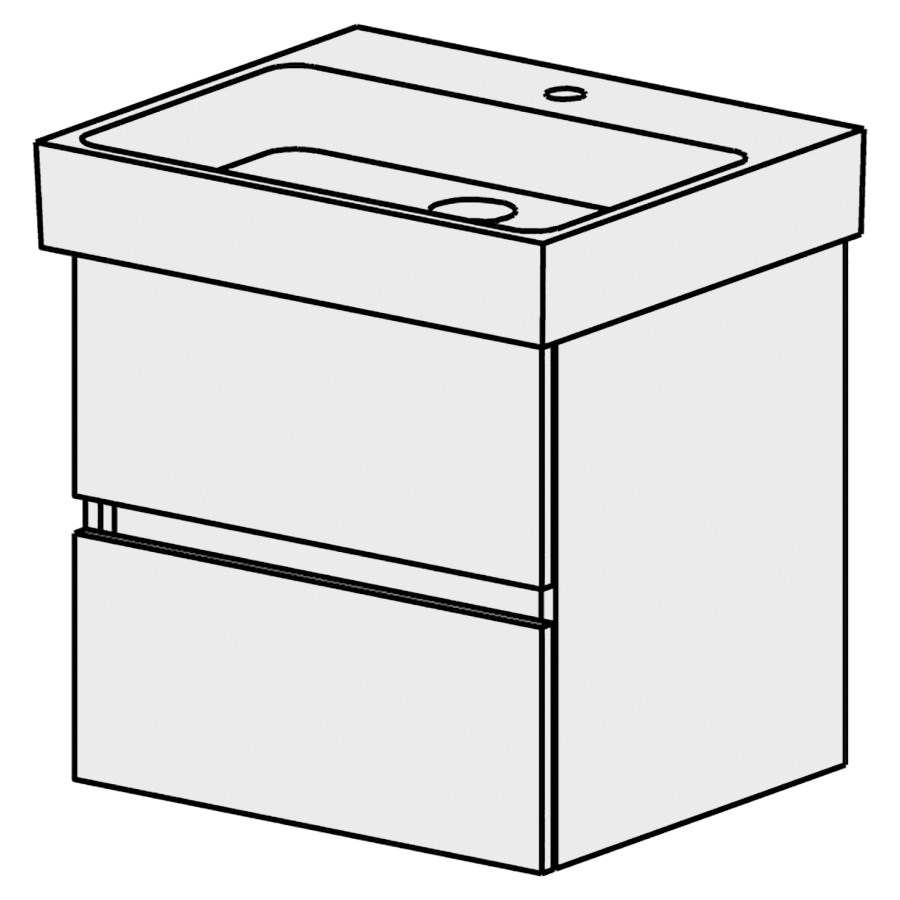 B: 51 H: 49, T: 43,8 cm, 2 Schubladen, Schubladen, mit Blumotion, mit Griffleiste, Fronten/Sichtseiten gem. Code, Farbe gemäss Palette, für Raumsparsifon und, Steckdichtung 32 mm