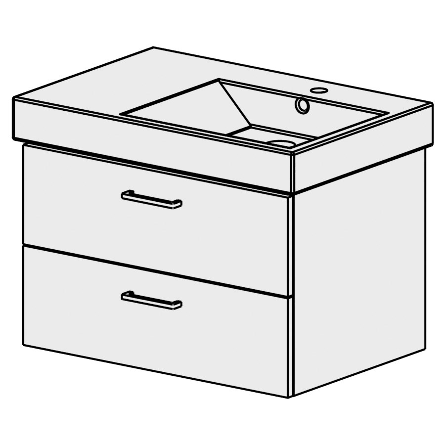 75 cm,, B: 71, H: 46, T: 48,8 cm, Schubladenstock à 2 Schubladen, Schubladen mit Blumotion, Griffe gemäss Palette, Fronten/Sichtseiten gem. Code, Farbe gemäss Palette, für Raumsparsifon und, Steckdichtung 32 mm