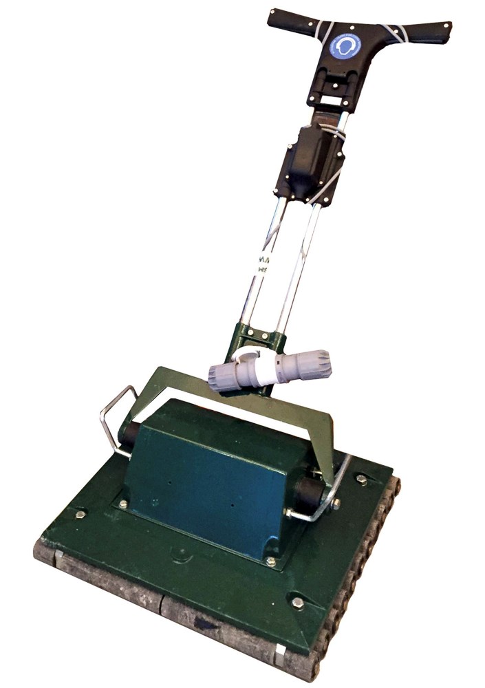 Ideales Vibrationsgerät für Pflastersteine, Platten aus Feinsteinzeug-, Beton- oder Naturstein, zum Einrütteln des Oberbelages in das frische Bettungsmaterial, Elektrogerät 230 Volt, Rüttelfläche 47x52 cm mit 11 beweglichen Rollen, Gewicht 46 kg, gleiches Gerät wie in Hug-Mietflotte !