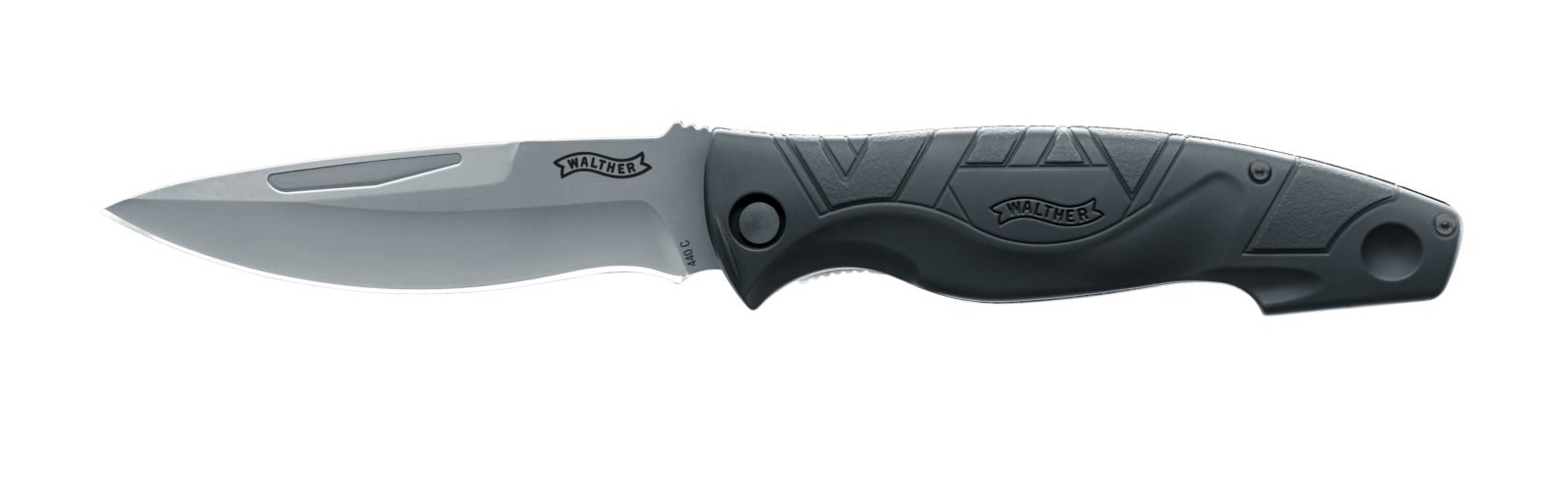 Das Walther TFK - Traditional Folding Knife unsere elegante Version eines Allrounder mit schlanker Zweihand-Folder mit Linerlock-Verriegelung , rutschfeste G10-Griffschalen mit schwarzer Gummi-Beschichtung für einen komfortablen und handlichen Griff. Traditionelle mattbeschichtete Klingenform aus Stainless- Steel. Länge 245 mm, Klingenlänge 110 mm, Gewicht 184 g, Inklusive Nylon-Holster